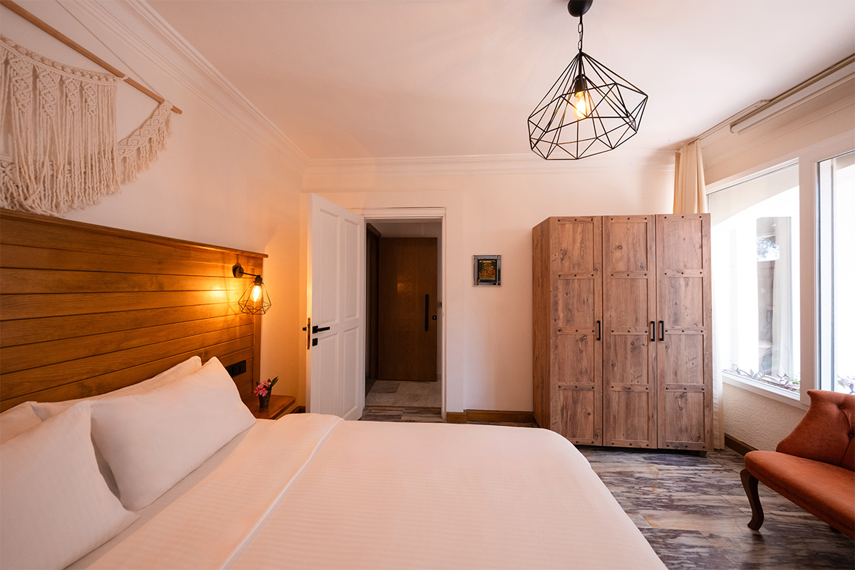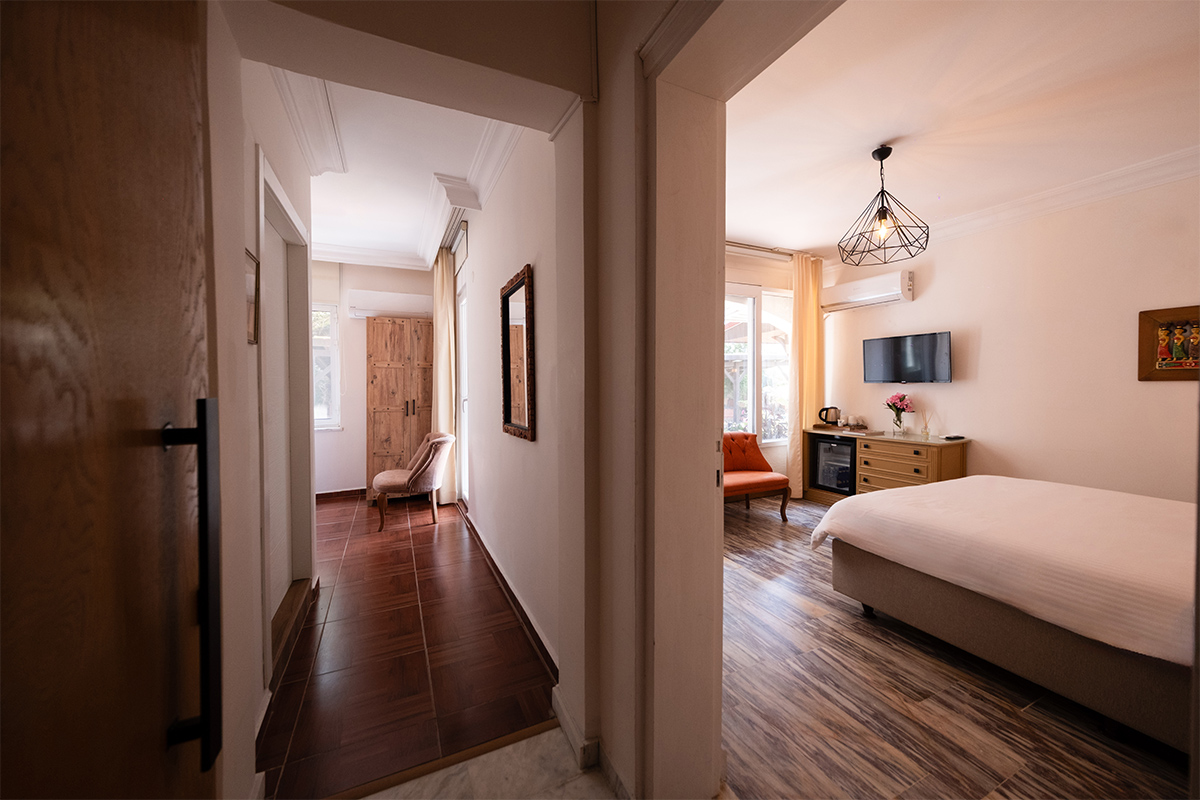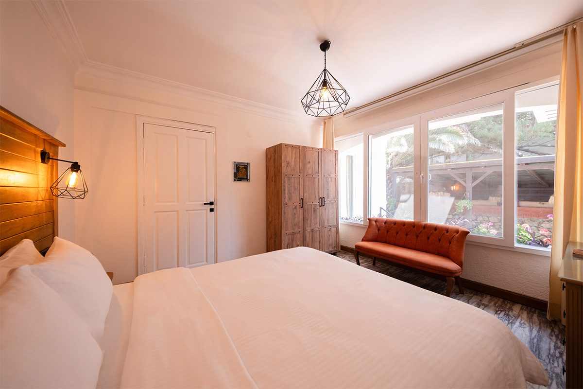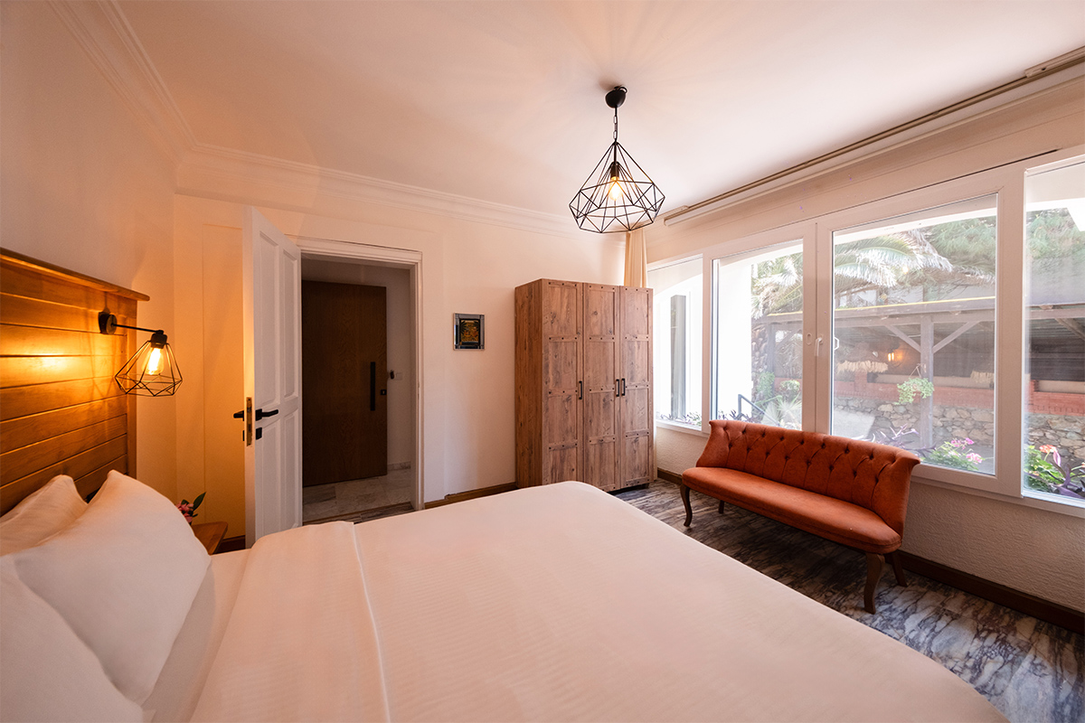 Casa Linn’in 35 m² genişliğindeki 3 kişilik süit odası, birden fazla kişiyle konforlu bir şekilde konaklamak isteyen misafirler için ideal bir seçenektir. Geniş yaşam alanı, hem birlikte vakit geçirme hem de bireysel dinlenme alanı sunar.