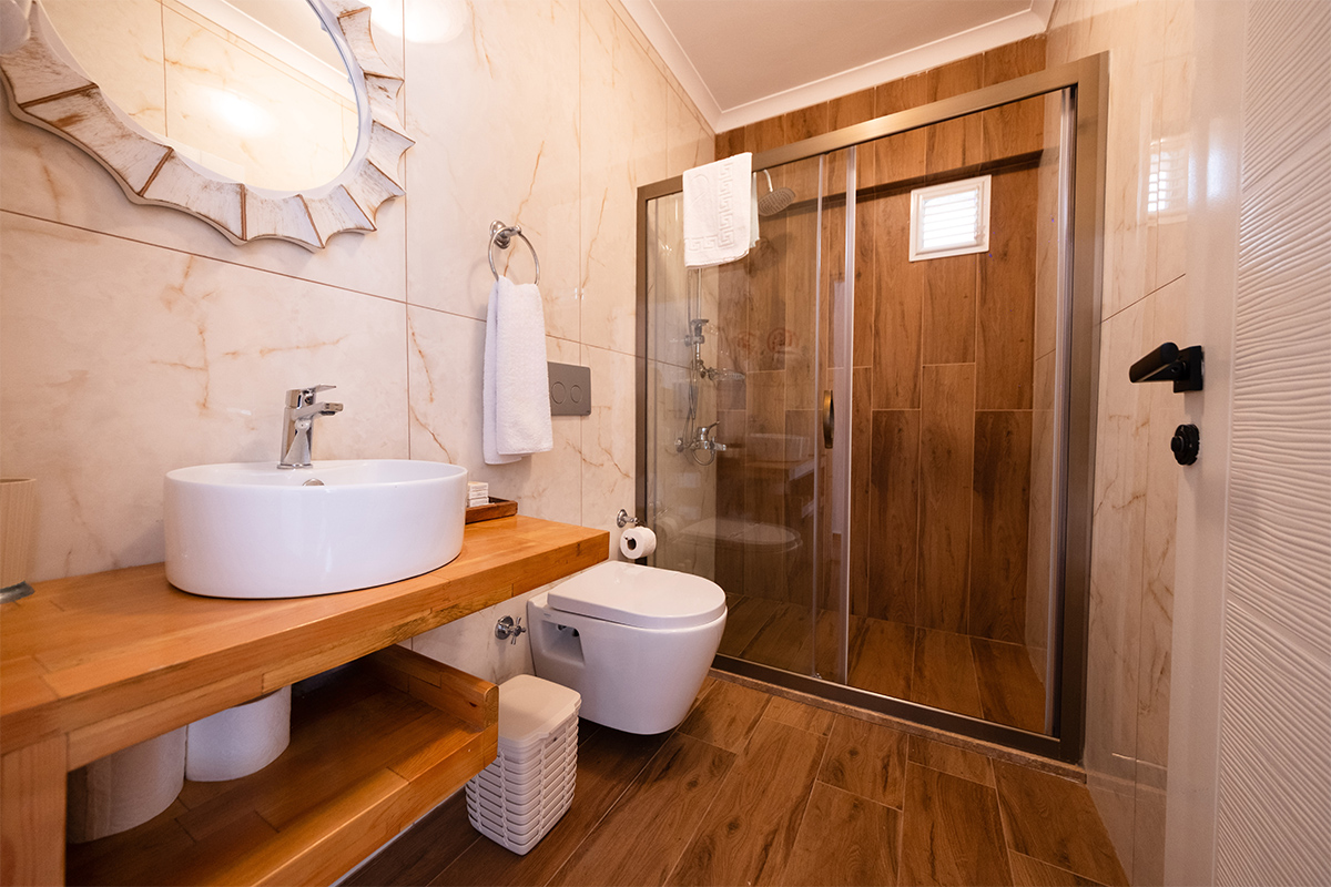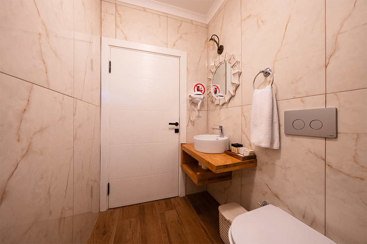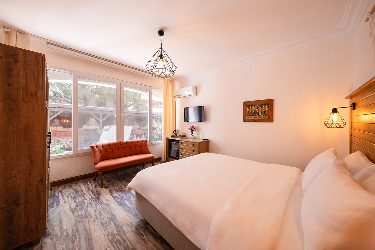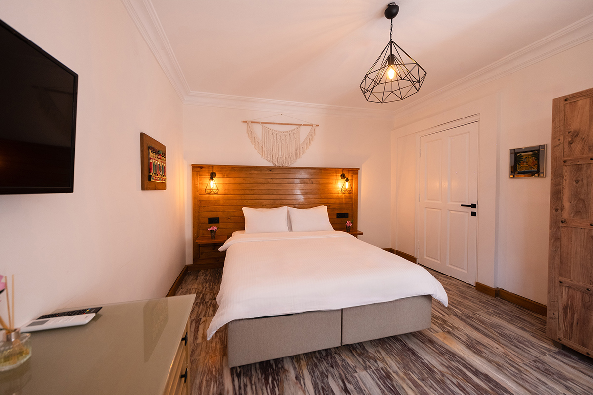 Casa Linn’in 35 m² genişliğindeki 3 kişilik süit odası, birden fazla kişiyle konforlu bir şekilde konaklamak isteyen misafirler için ideal bir seçenektir. Geniş yaşam alanı, hem birlikte vakit geçirme hem de bireysel dinlenme alanı sunar.
