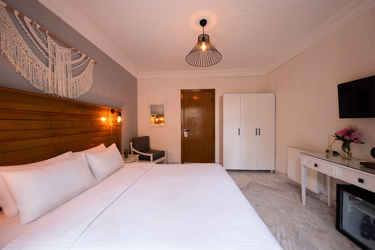 Sade ve işlevsel detaylarla planlanan bu oda tipi, hem kısa hem de uzun süreli konaklamalar için uygundur.