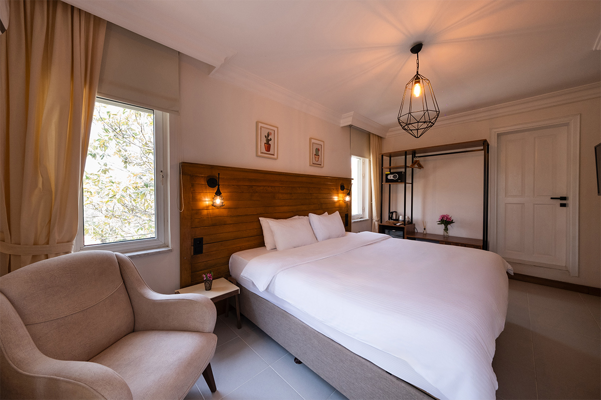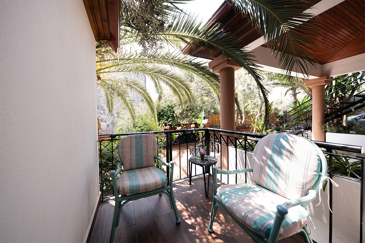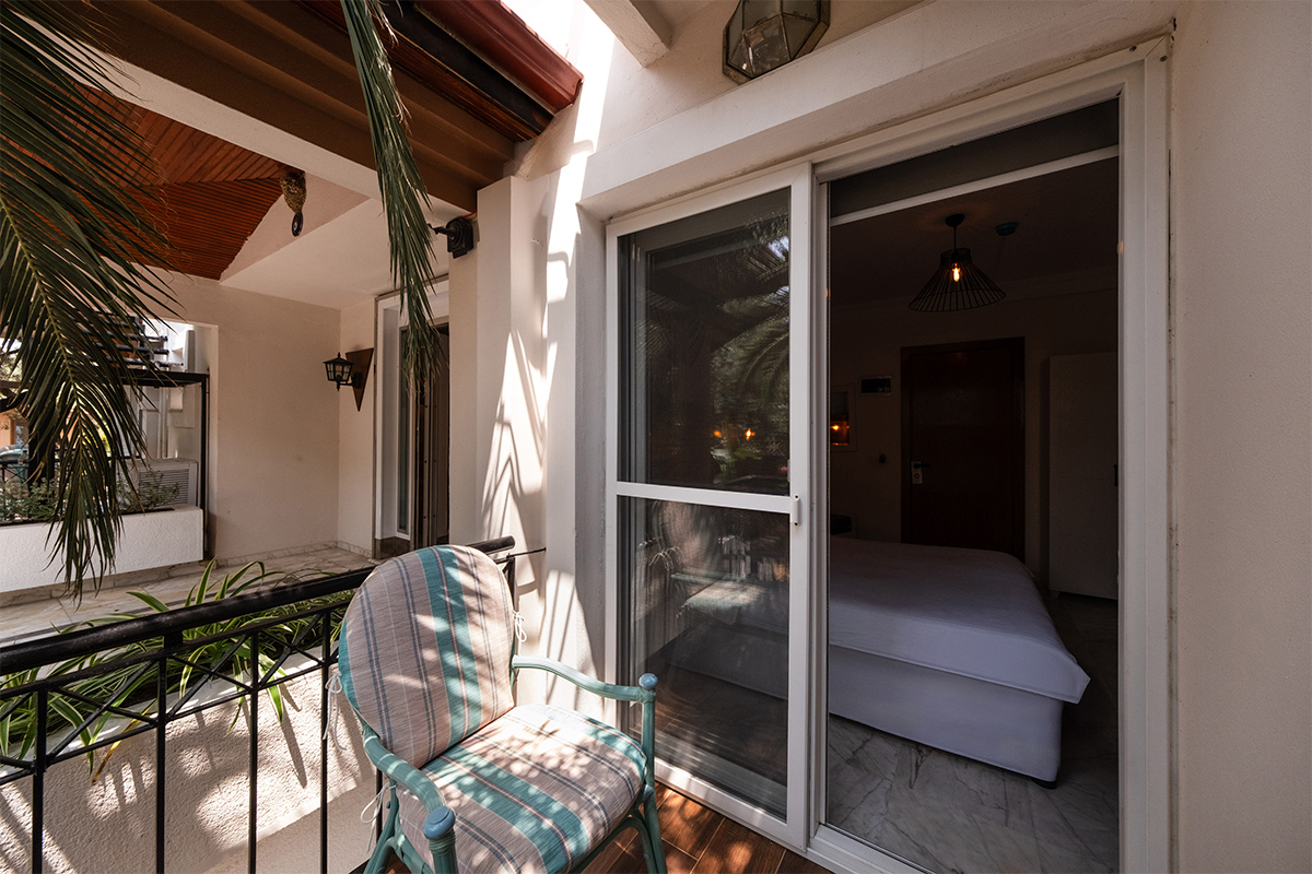 Casa Linn’in 25 m² genişliğindeki bahçe manzaralı balkonlu odaları, doğayla teması ön planda tutan misafirler için ideal bir konaklama seçeneğidir. Odaya ait özel balkon, günün her saatinde bahçeye açılarak açık havayla kesintisiz bir bağ kurmanıza olanak tanır.
