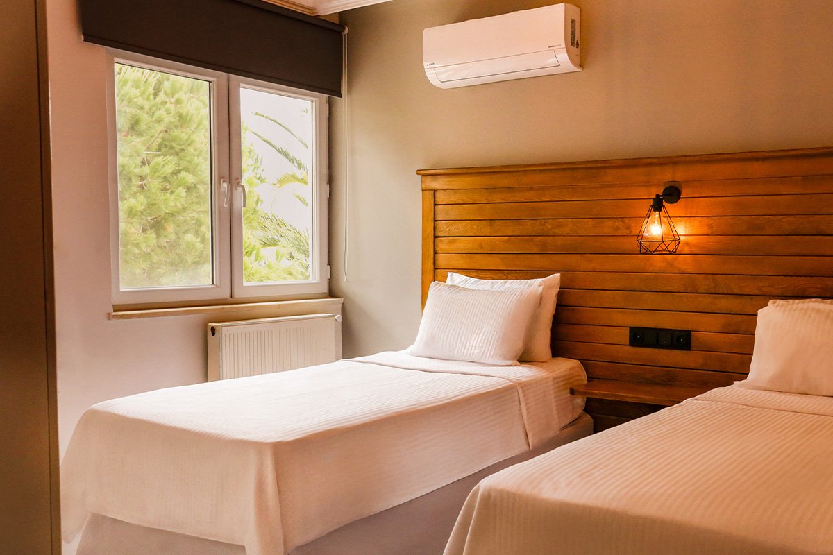 Hem konforlu hem de sosyal bir konaklama deneyimi sunan bu süit oda, denizin ve gün ışığının içeri taşındığı sakin bir atmosfer vadeder. Uzun süreli konaklamalarda ya da doğayla iç içe bir grup tatilinde geniş alan avantajı sunar.