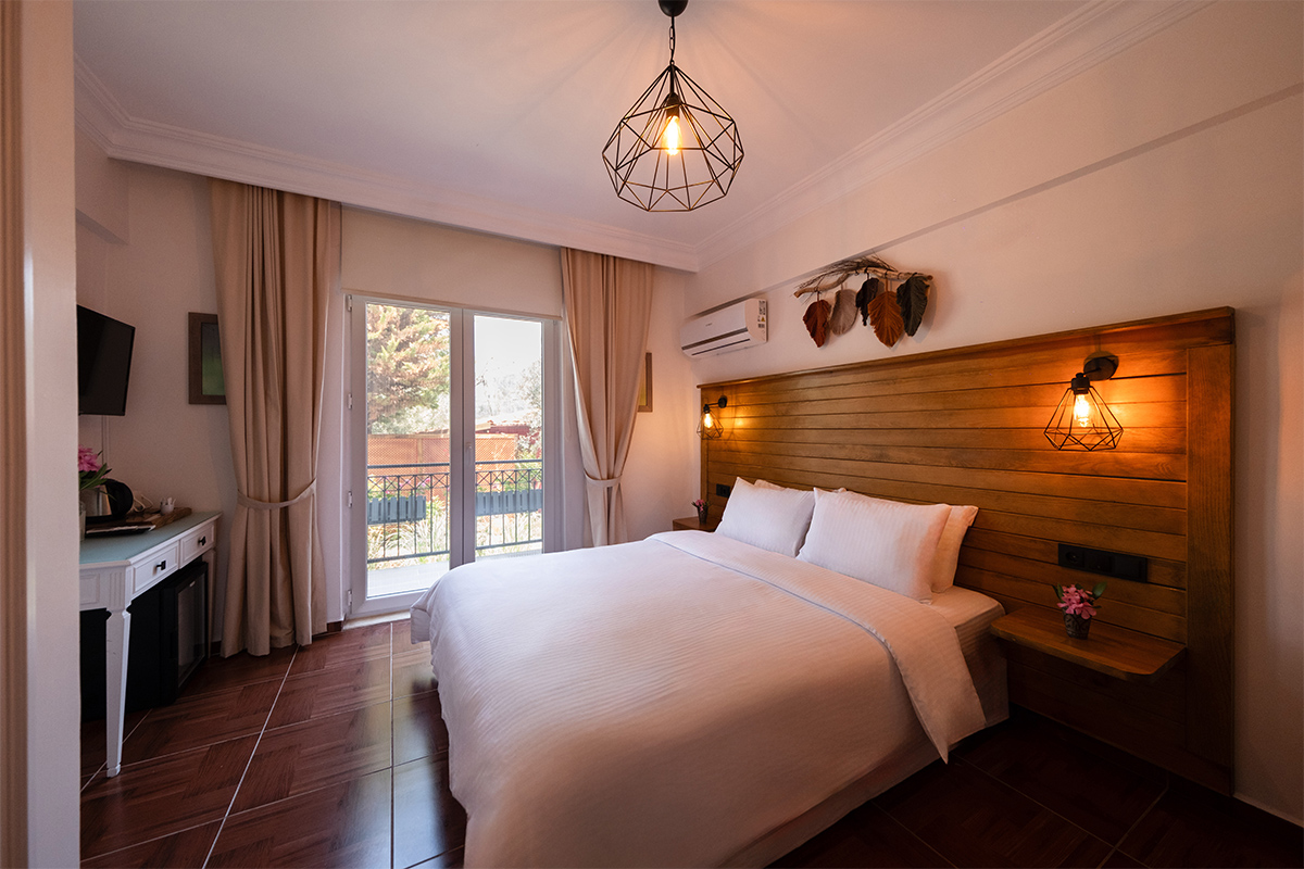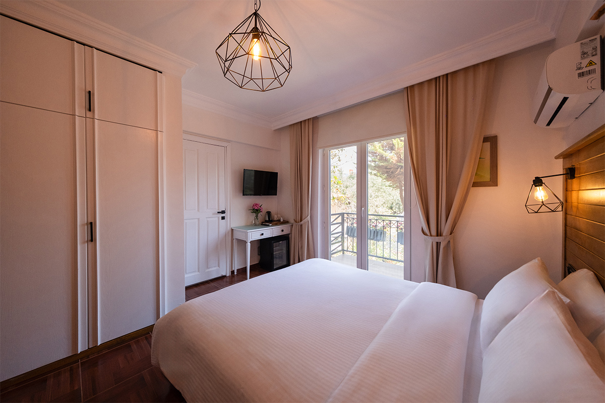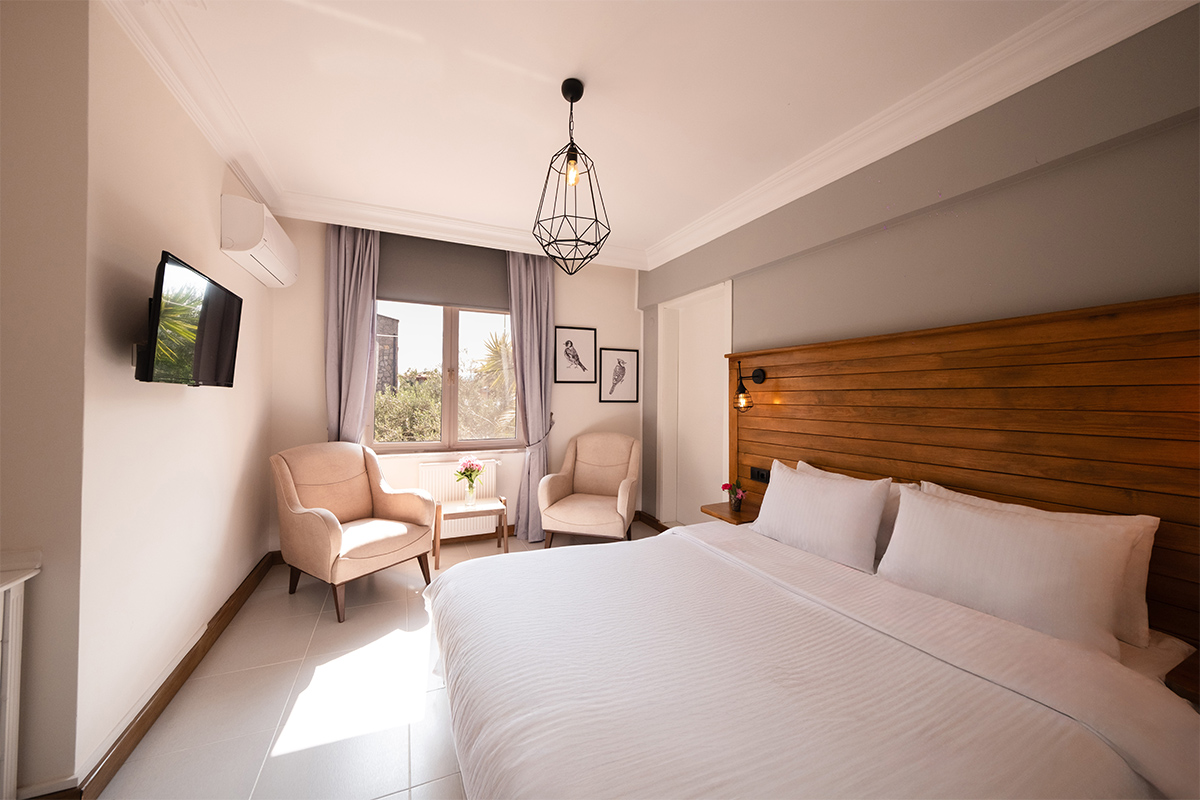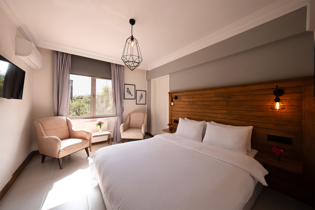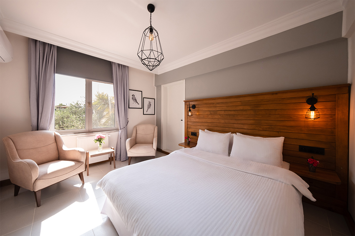 Doğanın içinde, ama her anında konforun eşlik ettiği bir konaklama deneyimi arayanlar için bahçeye bakan standart odalar, sade bir zarafetle hazırlanmıştır.