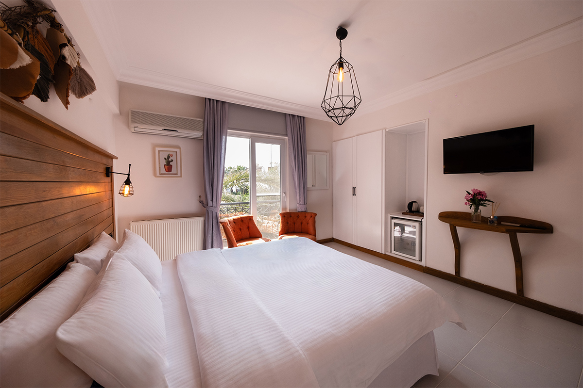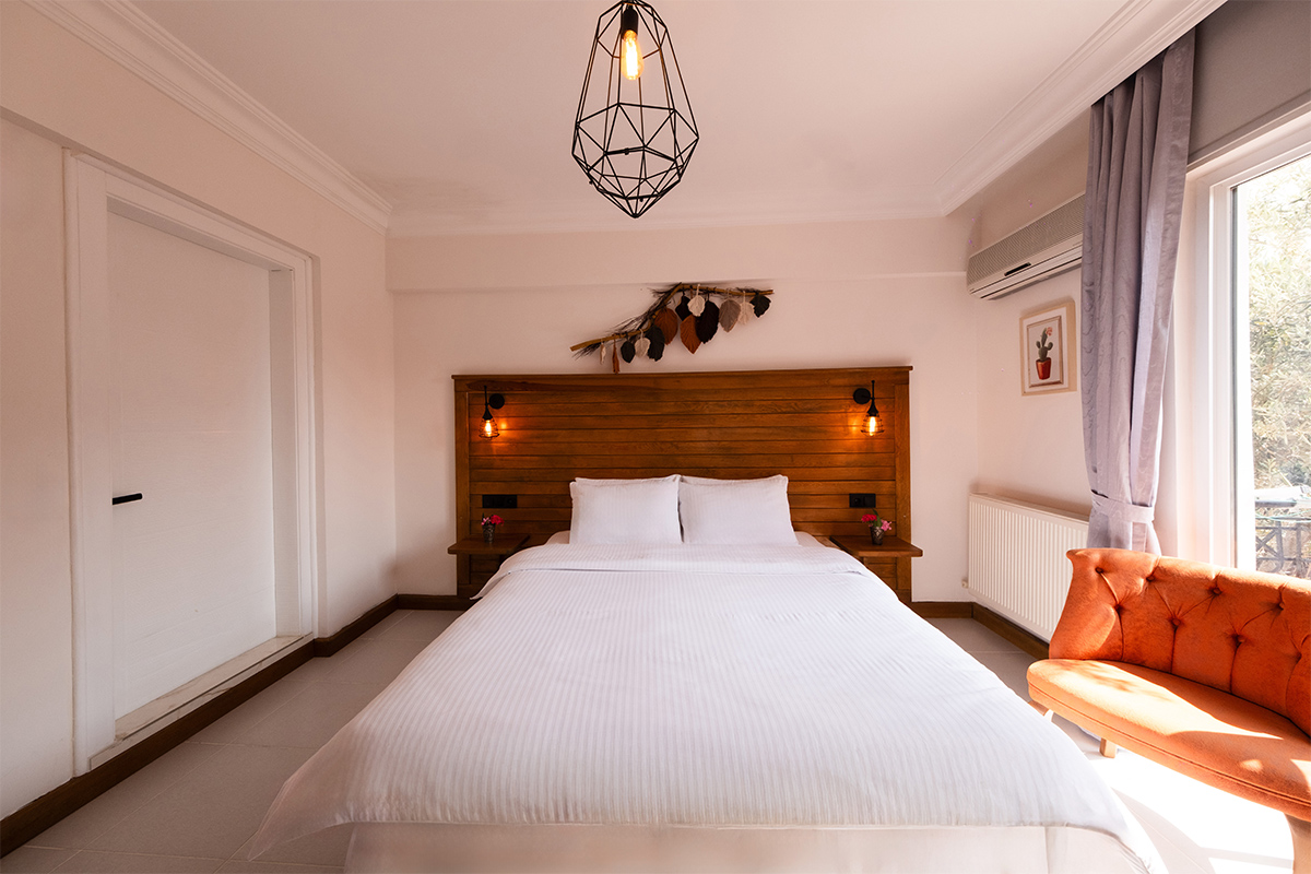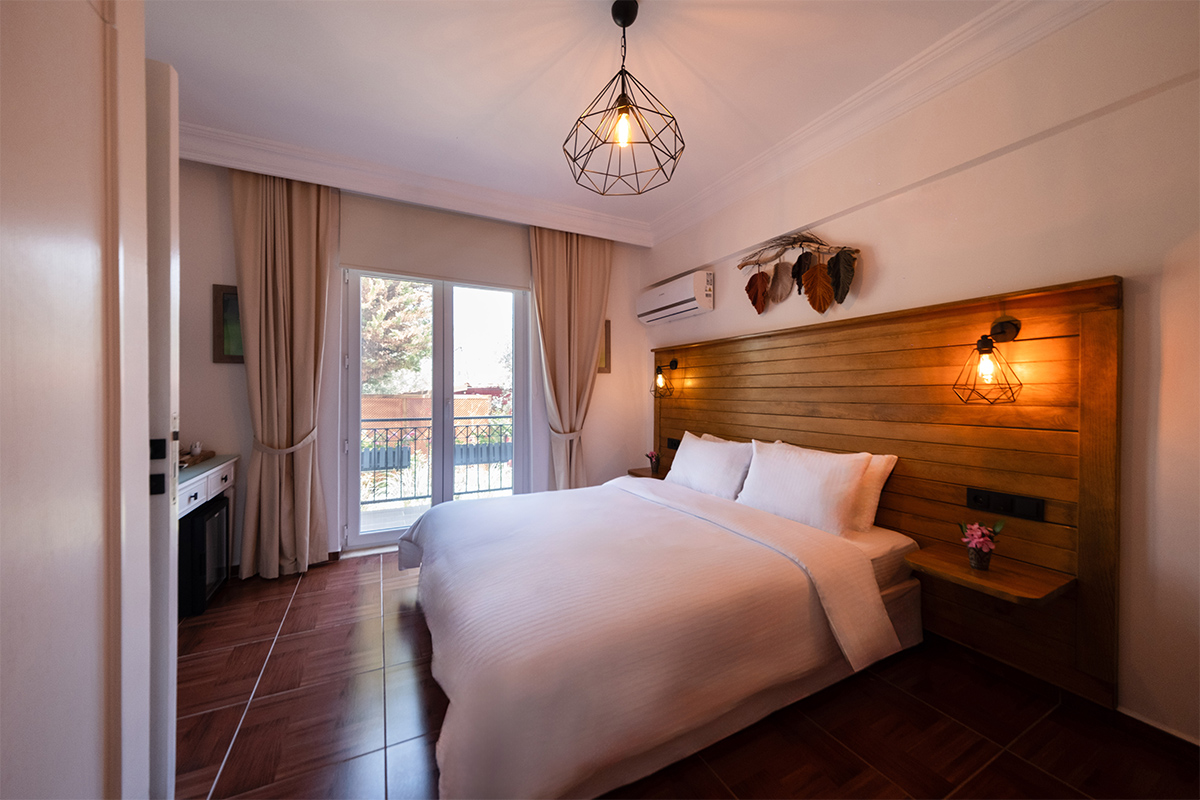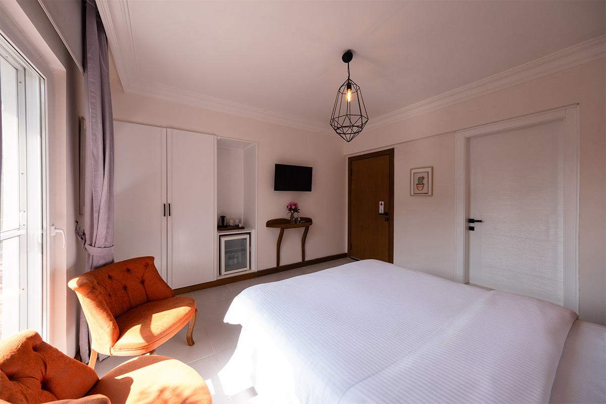 Doğanın içinde, ama her anında konforun eşlik ettiği bir konaklama deneyimi arayanlar için bahçeye bakan standart odalar, sade bir zarafetle hazırlanmıştır.