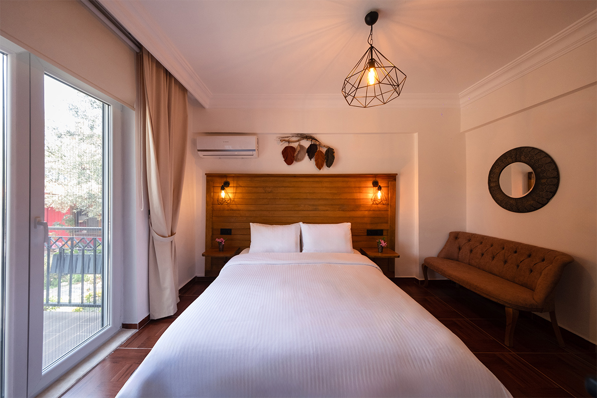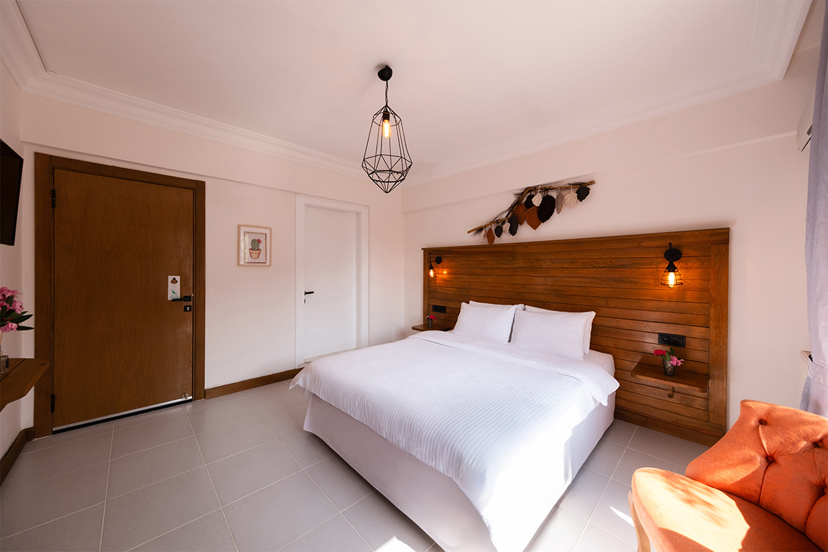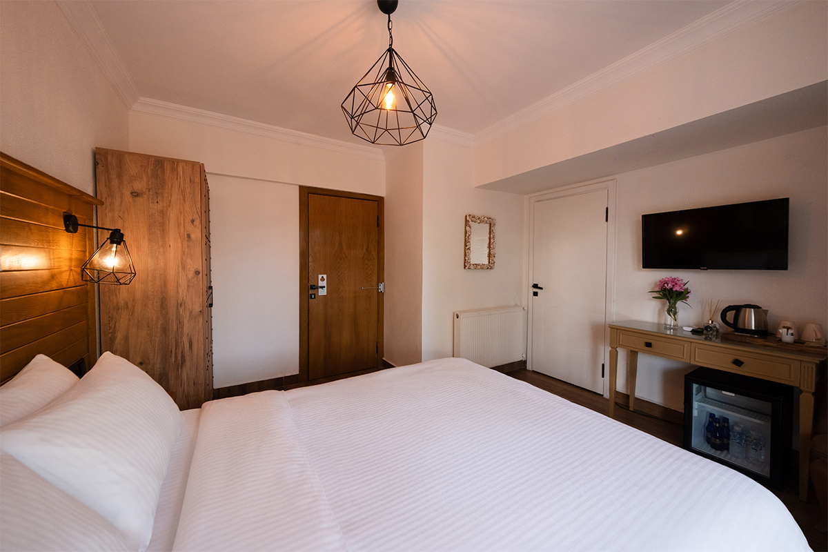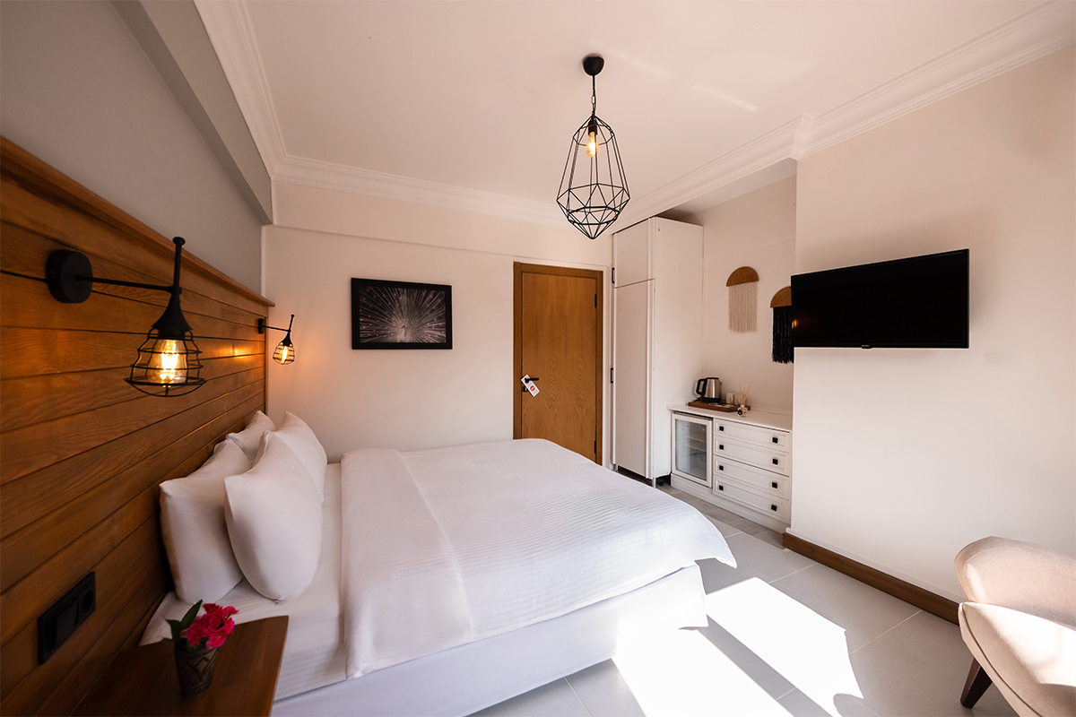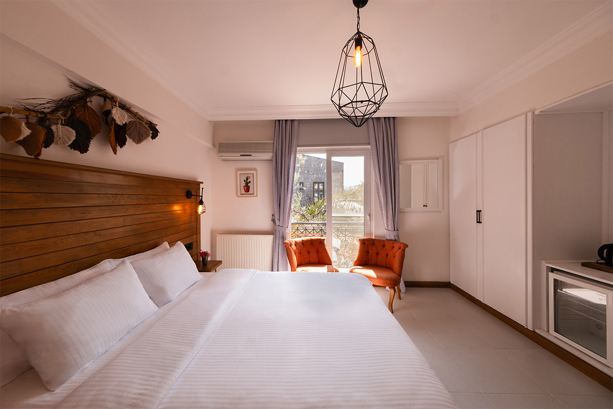 Doğanın içinde, ama her anında konforun eşlik ettiği bir konaklama deneyimi arayanlar için bahçeye bakan standart odalar, sade bir zarafetle hazırlanmıştır.